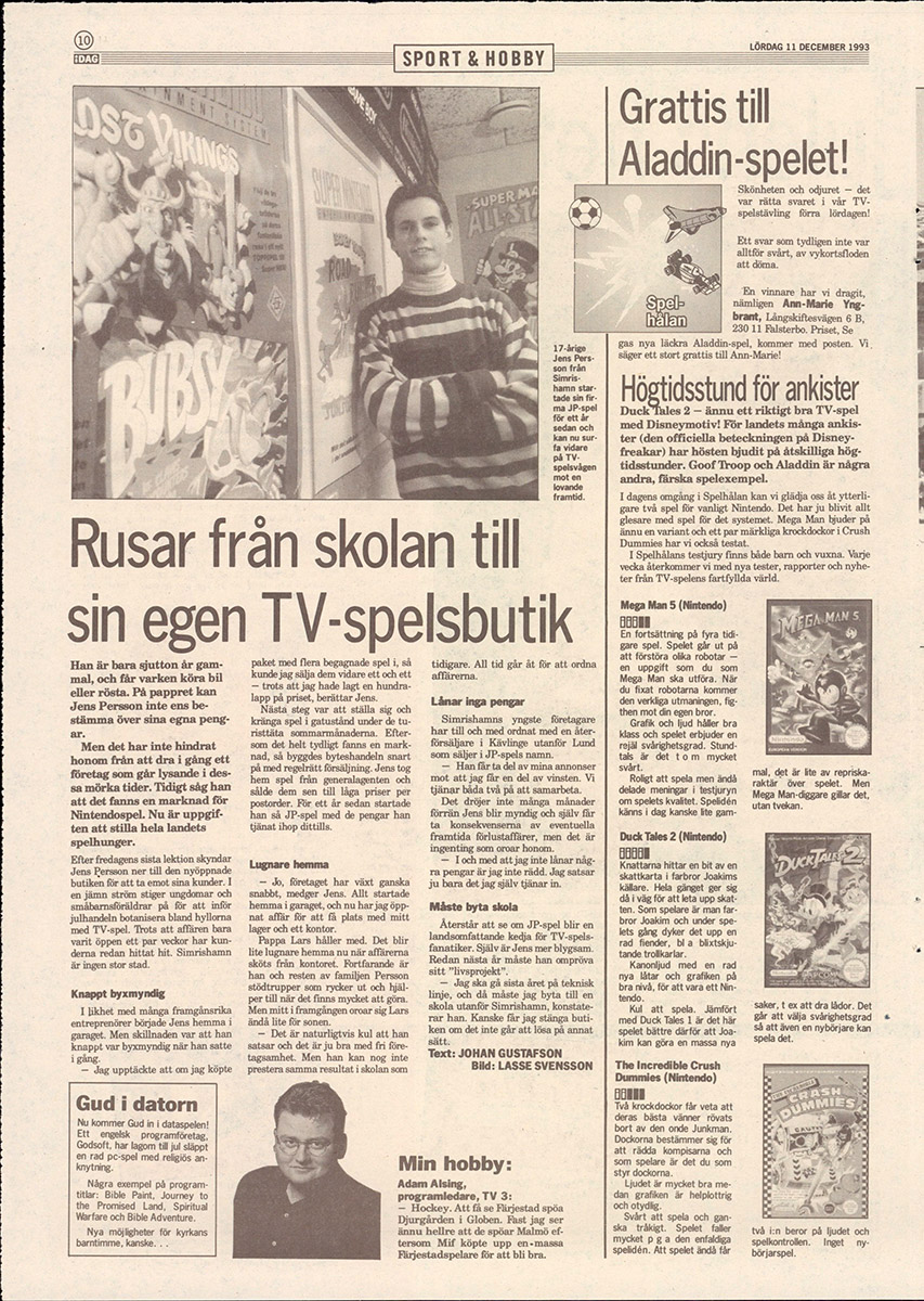 11.12.93 – iDag – (JP) rusar från skolan till sin egen spelbutik och spelrecensioner-WEB Publicerad den 2 januari, 20222 januari, 2022 av Martin Lindell