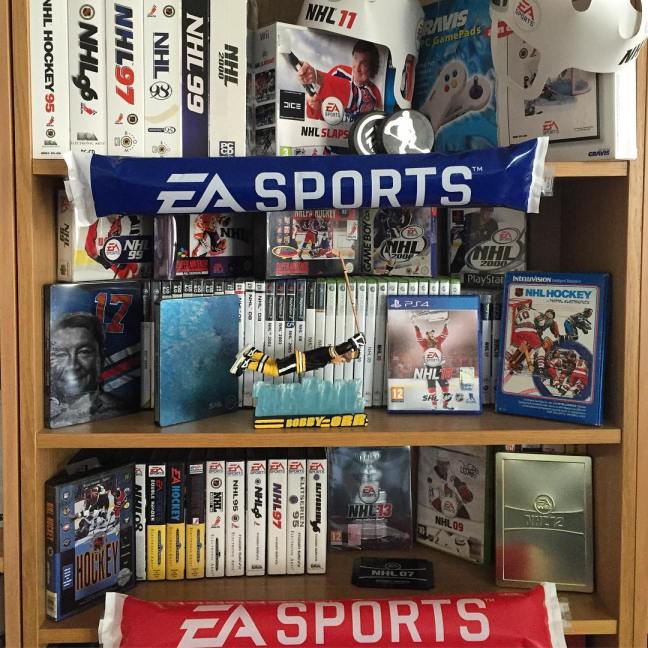 Att samla på spel är i sig en konst. Jag samlar egentligen inte direkt aktivt, dyker det upp ett spel i svarta serien till NES eller ett Game & Watch som jag inte har till rimligt pris så kanske jag klipper till. En samling som växer sakta organiskt är NHL-samlingen. Jag har minst en version per år sedan starten, saknar åtskilliga varianter med omslag och olika plattformar. I samlingen ingår förutom EA SPORTS även första licensierade NHL-spelet som släpptes till Intellivision och en del andra NHL-titlar. Saknar dock Mutant League Hockey till Mega Drive. NHL-samlingen imponerade till och med på EA SPORTS som postade bilden på sitt Instagram-konto.