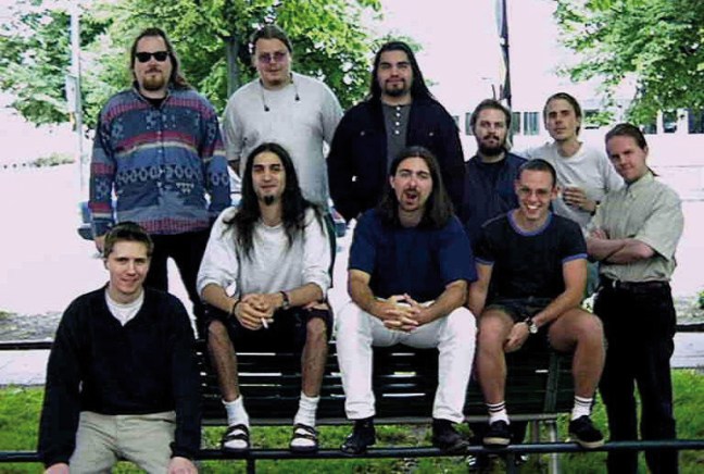 Neurostones team på Autodestruct, översta raden stående: Anders ”Psycho” Almman, Patrik ”Dragon” Havilla, Juan Gautier, Johan Landström, Egil Sjölander och Ulf Pettersson. Sittandes: John ”CRT” Hammarberg, Che ”Alfatech” Lalic, Robert ”Bob” Györvari och Patrik ”Contring” Nylén.