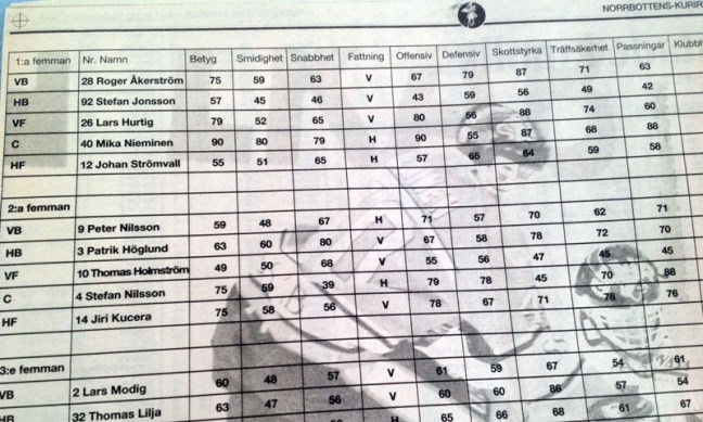Statistiken med bedömningar av spelarnas egenskaper var så intressant att dagstidningar som ovan Norrbottens-Kuriren publicerade det.