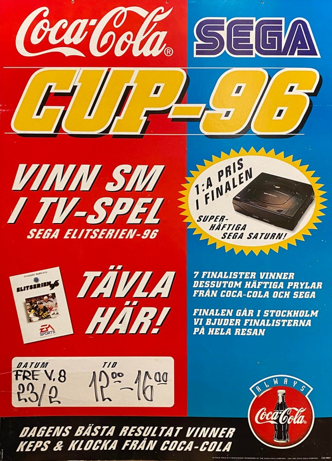 När Elitserien 96 släpptes så hade den nya konsolen Sega Saturn haft premiär. Brio vävde in Saturn i marknadsföringen av Elitserien 96 som ovan i en tävling med Coca Cola som ägde rum i större dagligvarubutiker.