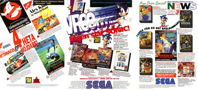 Några exempel på SEGA Official Software News från 1990, 1991 och 1992.