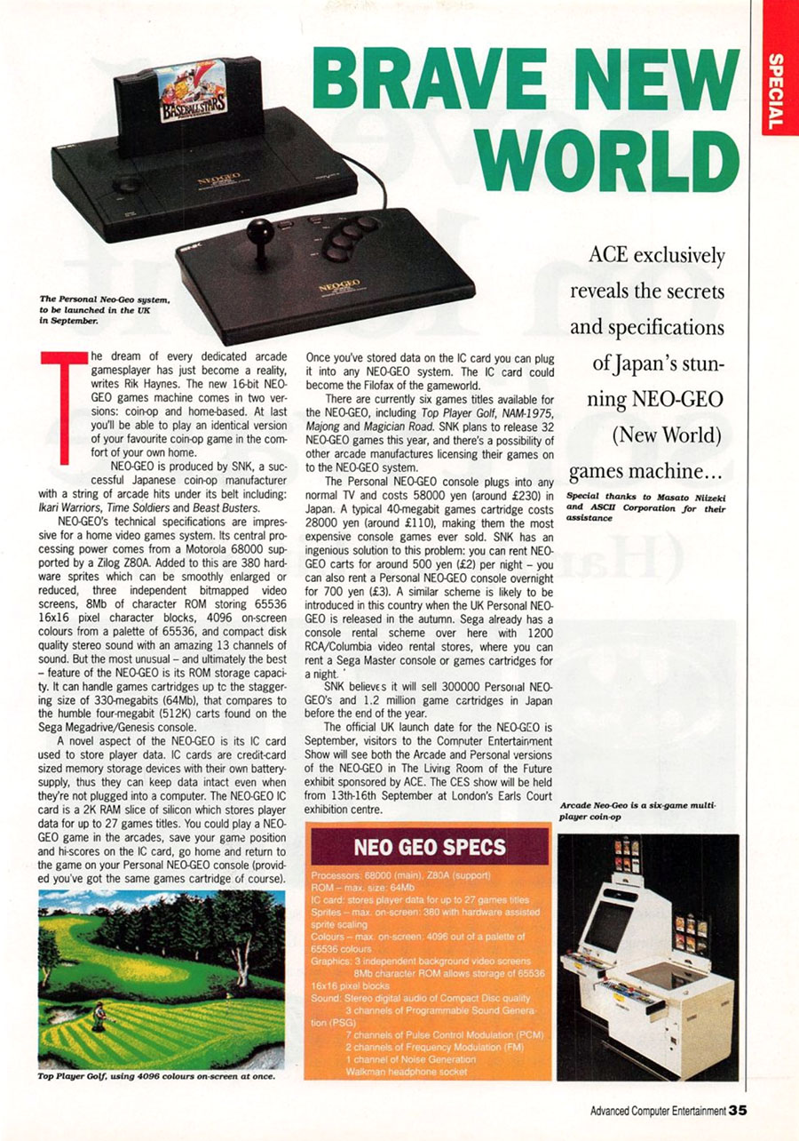 Tack för en väldigt intressant och ingående artikel. Neo geo har ju alltid haft en viss mystik kring sig. Hade själv inte råd med en AES likt de flesta andra när den såldes i bla lokala Poppis-butiken i Sollentuna Centrum under tidigt 90-tal. Det fick bli en Mega drive istället då. Men jag kommer ihåg de påkostade demo-stationerna de hade med spel som Fatal Fury och Ninja Combat.