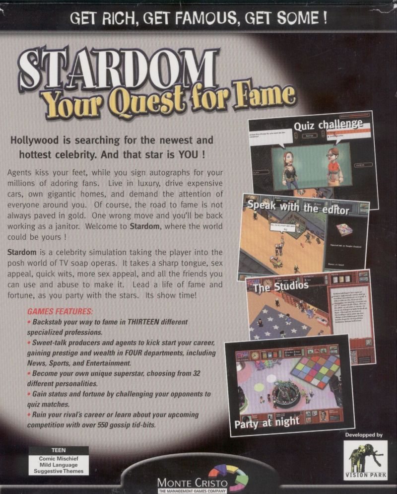 Rättigheterna utanför Norden såldes till franska Monte Cristo som gav ut spelet i flera länder i Europa och Nordamerika. Den engelska titeln blev Stardom: Your Quest for Fame i Nordamerika. I Frankrike och Tyskland gick spelet under namnet TV Star. Monte Cristo bekostade lokaliseringen och betalade royalty till Vision Park för varje sålt spel, vilket var en oväntad uppsida för det havererade projektet.