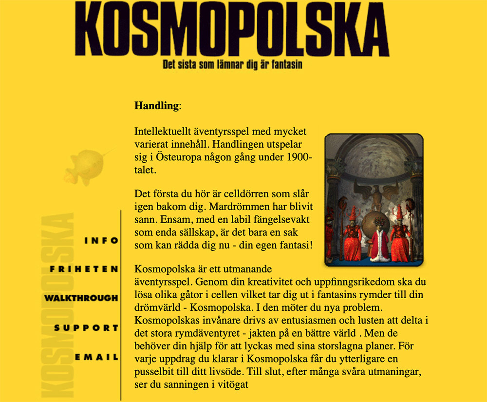 – Det var väldigt starka scener i en väldigt bra story och det är synd att inte fler har sett Kosmopolska. Jag tror det skulle vunnit på att vara en interaktiv film och jag borde hållt ner alla som försöker att göra det till något annat som spel, menar Thorsen.