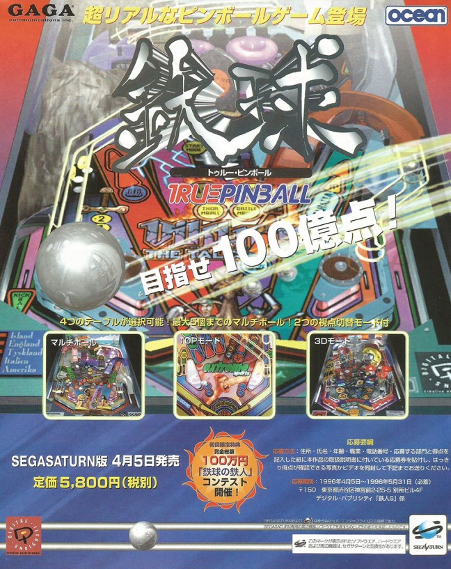 True Pinball hanteras i Japan av Gaga Communications. Senare utgåvor i väst har franska Infogrames som utgivare istället för Ocean. Anledningen är att Ocean köps upp av den expanderande franska jätten 1996. Namnet Ocean lever vidare som varumärke fram till 1998 då det helt och hållet ersätts av Infogrames.