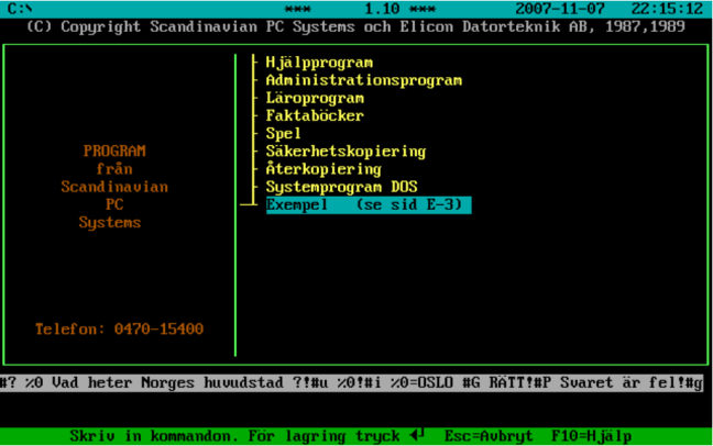 – Vi hade ett Meny-program som var poppis på DOS-tiden när alla program låg utspridda på hårddisken och du inte kom ihåg sökvägarna. Där kunde du bygga ditt egna ”frågespel” via ett enkelt (ironi!) makro-språk i det grå fältet i nederkant, säger Peter Härder, som arbetat på SPCS sedan 1995.