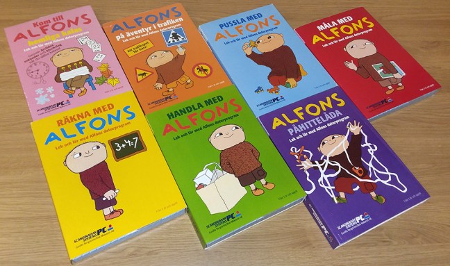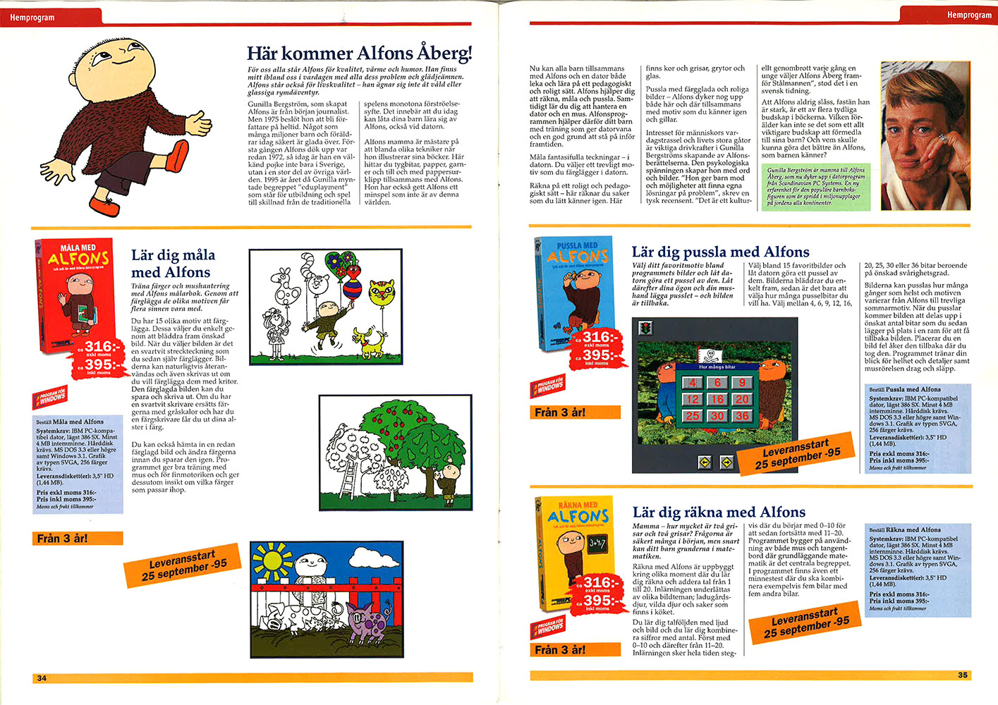 Från Axomedia kommer spelet Selma (1995) som är döpt efter författarinnan Lagerlöf och är en blandning av korsord och alfapet. Samma år som det kommer ut lanseras även en serie med spel kring barnbokskaraktären Alfons Åberg. Dessa utvecklas av företagen Infotext och Axomedia samt Peter Harrison från Stroud, England. Infotext är lägligt nog belägna i Växjö.