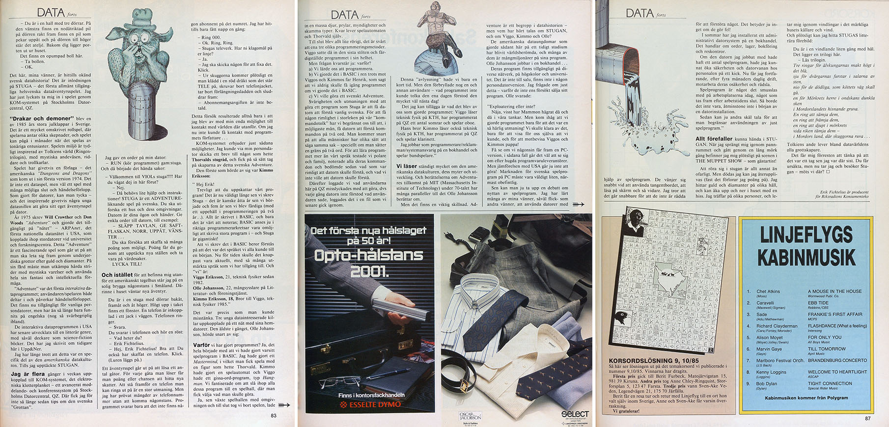 Även journalisten Erik Fichtelius har ett konto på QZ och testar spelet Stuga. Han blir så intresserad att han skriver en artikel om spelet i Linjeflygs tidning Upp&Ner 1986, något som kommer att vara avgörande i att föra ut spelet till massorna (eller nåja, till de som har tillgång till en PC) utanför den lilla cirkeln med de som häckar på QZ.