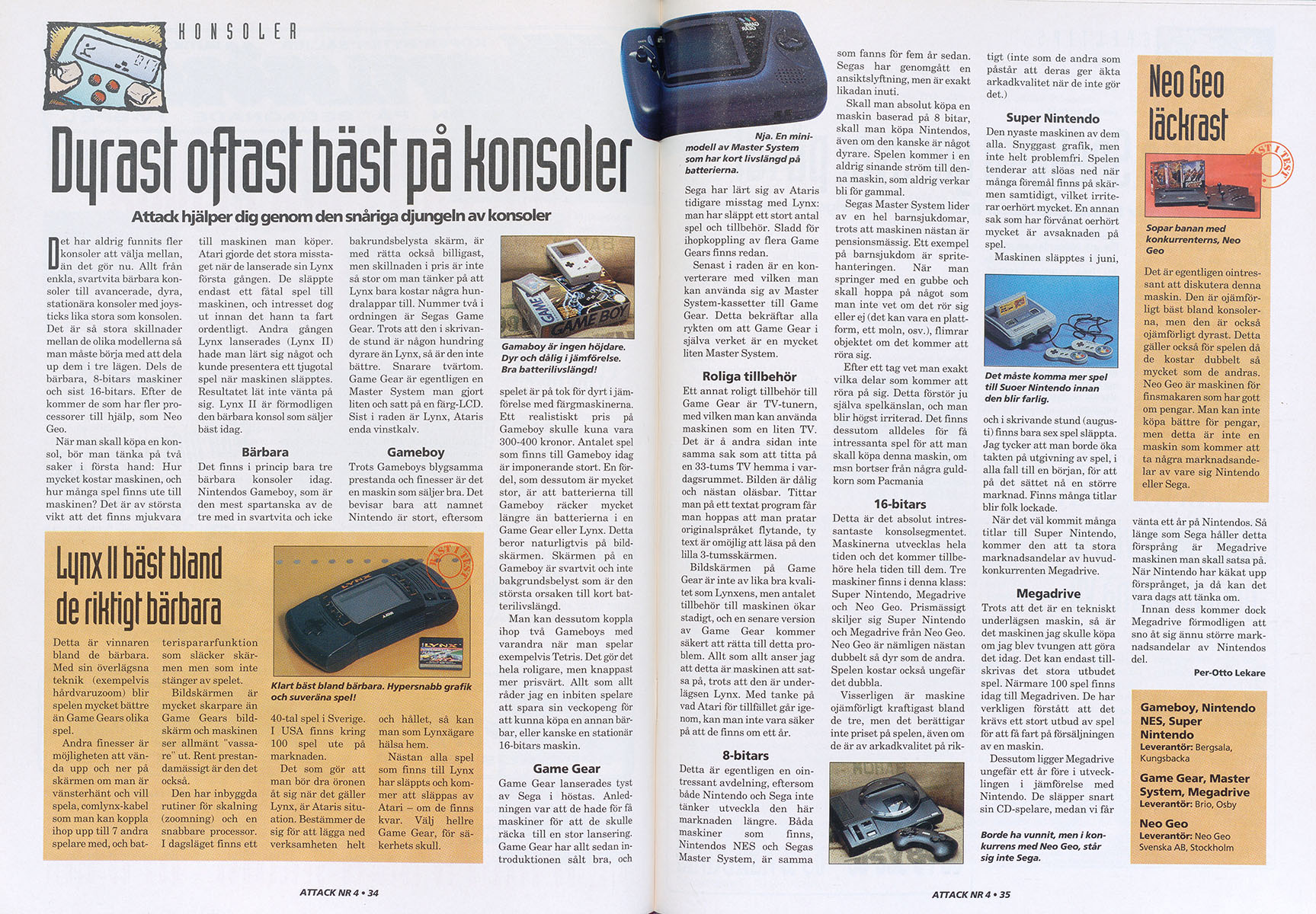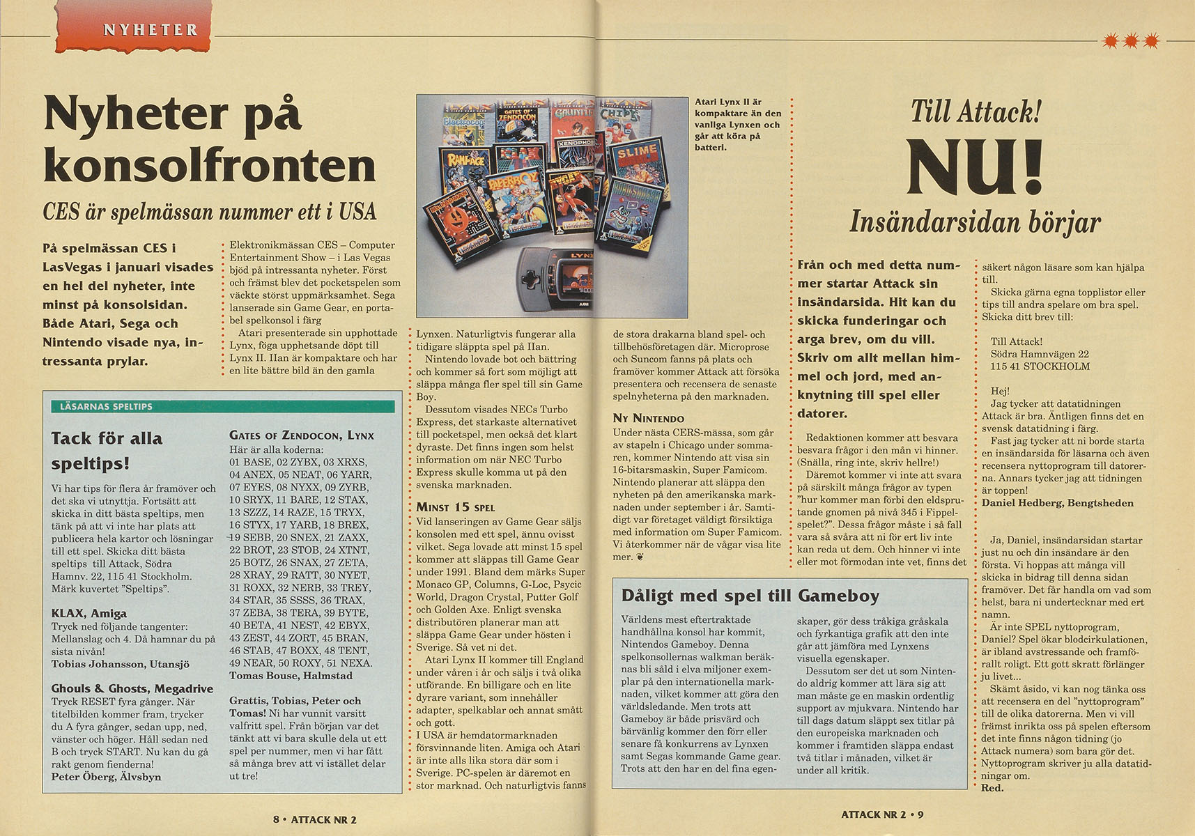Lynxens främsta supporter var spel- och datortidningen Attack som publicerade flera sidor med recensioner av Lynx-spel i åtskilliga nummer och hyllade konsolen. Artiklarna i Attack var signerade Lars-Göran Nilsson, en journalist som skrev i den första svenska speltidningen Joystick tidigt 80-tal (mer om den och andra svenska speltidningar kan man läsa här) och hörde till generationen som spelat mycket Atari 2600 vilket antagligen gav en förkärlek till Lynx.