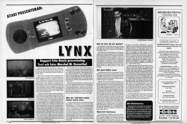 I början på året 1991 ökade Svenska Hemdatornytt sin bevakning av tv-spel genom att göra avdelningen ”Konsollidérat” till ett permanent inslag i tidningen. I samband med detta publicerade de ett test av alla konsoler. Lynx prisades för sin prestanda men de noterade att den brottas med kvalitén på spelen och att den ”tuggar i sig batterier med en hastighet som kan göra vilken kommunal batteribox som helst grön av avund”. I samma test kritiseras Game Boy för att ”svartvit skärm och ljudet är väl inte mycket att hänga i julgranen” men det kompenseras av att ”Nintendo är helt överlägsna när det gäller att tillverka välskrivna spel”. Svenska Hemdatornytt följde upp i nr. 2/1991 där de skrev att ”det gör en spelare verkligen ont i hjärtat att se hur möjligheterna hos denna fantastiska maskin missbrukas” och syftade på att de flesta nya spel till Lynx är ”fantasilösa på gränsen till det tråkiga”.