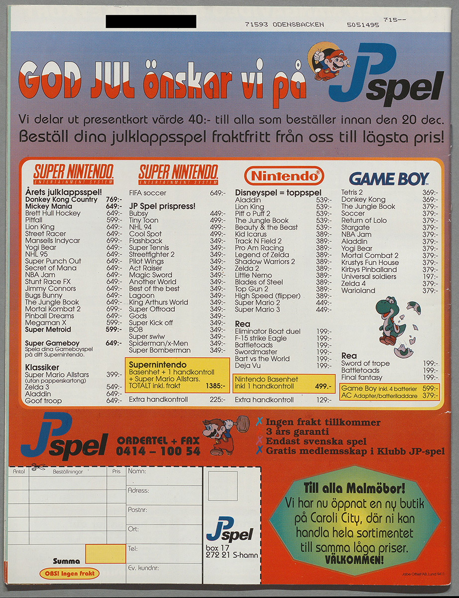 Super Power 94-08_JP Spel-annons (Super Mario All-Stars utan kartong)-WEB Publicerad den 2 januari, 20222 januari, 2022 av Martin Lindell